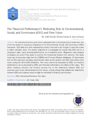 The Financial Performance's Mediating Role in Environmental, Social, and Governance (ESG) and Firm Value