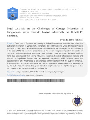 GJMBR-G Interdisciplinary: Volume 24 Issue G1